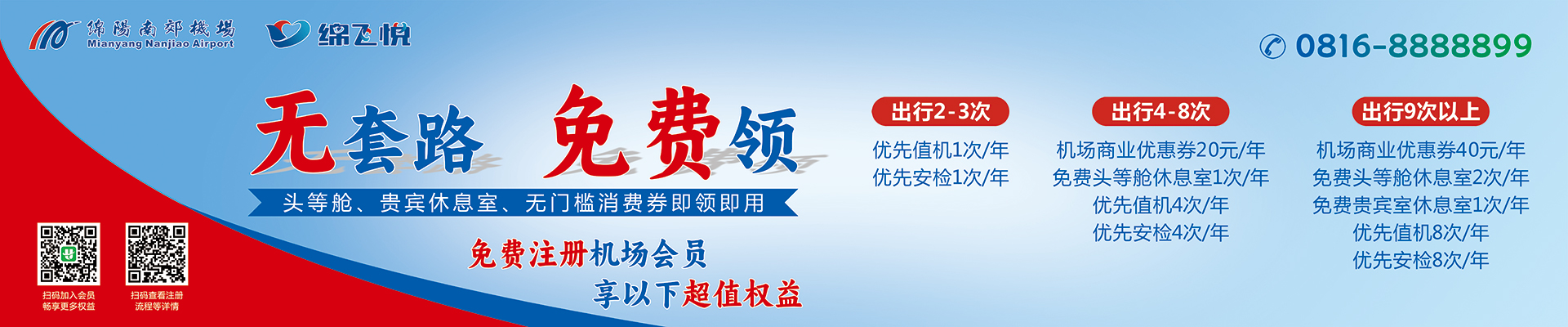Copyright (c) 2019 綿陽(yáng)機(jī)場(chǎng)(集團(tuán))有限公司 聯(lián)系地址: 綿陽(yáng)市經(jīng)開(kāi)區(qū)機(jī)場(chǎng)東路6號(hào)
