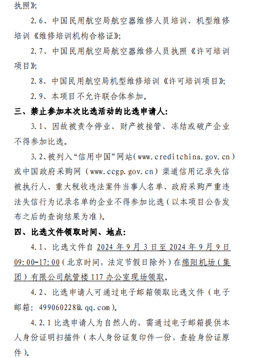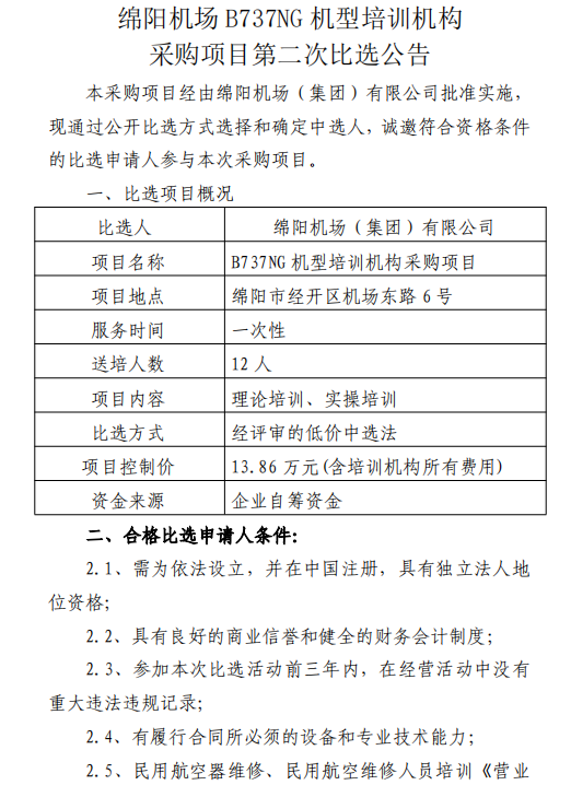 綿陽機場B737NG機型培訓(xùn)機構(gòu)采購項目第二次比選公告